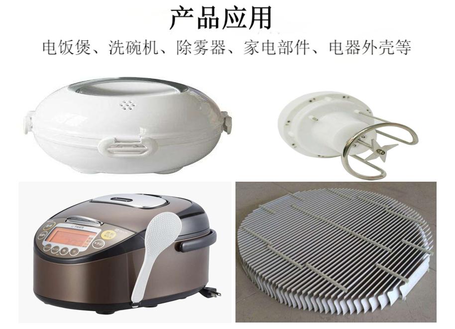 寰宇新材料研发矿物填充改性塑料,材料尺寸稳定,收缩率低。 产品增加的刚度良好。 耐热性能优异。 性价比高。 能被广泛应用在小家电外壳、空调室外机、各种电子电器部件、工程结构部件等上,比如洗衣机内桶、微波炉部件、电饭煲等。